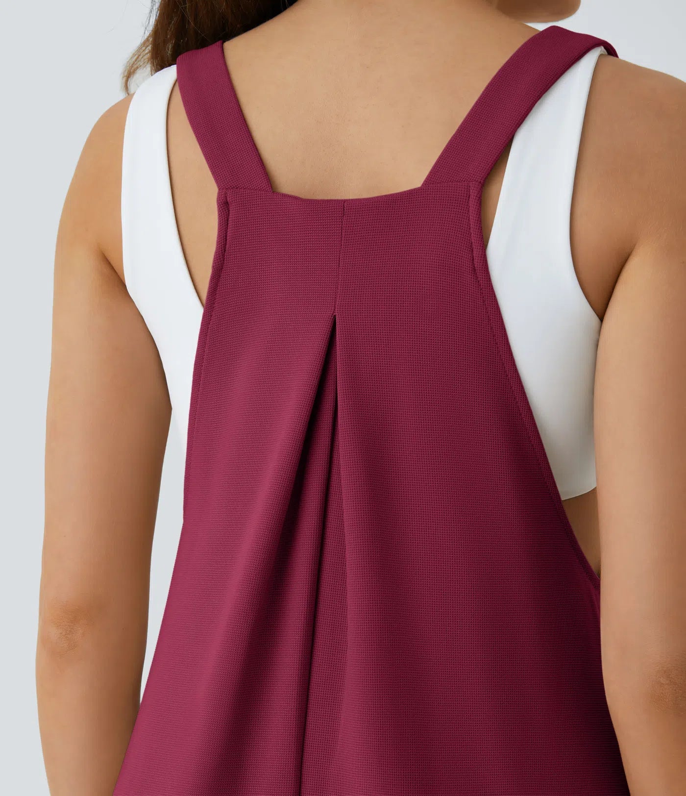 Jogger jumpsuit with adjustable belt and buttons, multiple pockets, and waffle pattern
