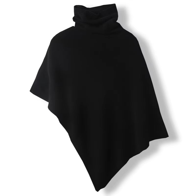 Wrap yourself in understated luxury with this 100% Merino wool turtleneck cape. Incredibly soft, naturally breathable, and beautifully draped — it delivers warmth without feeling bulky.